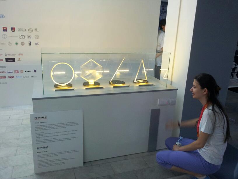 Zanimljiv eksponat posebno za decu. Interesantan način da nauče koja se geometrijska tela formiraju prilikom rotacije, kruga, kocke, prave i trougla :).