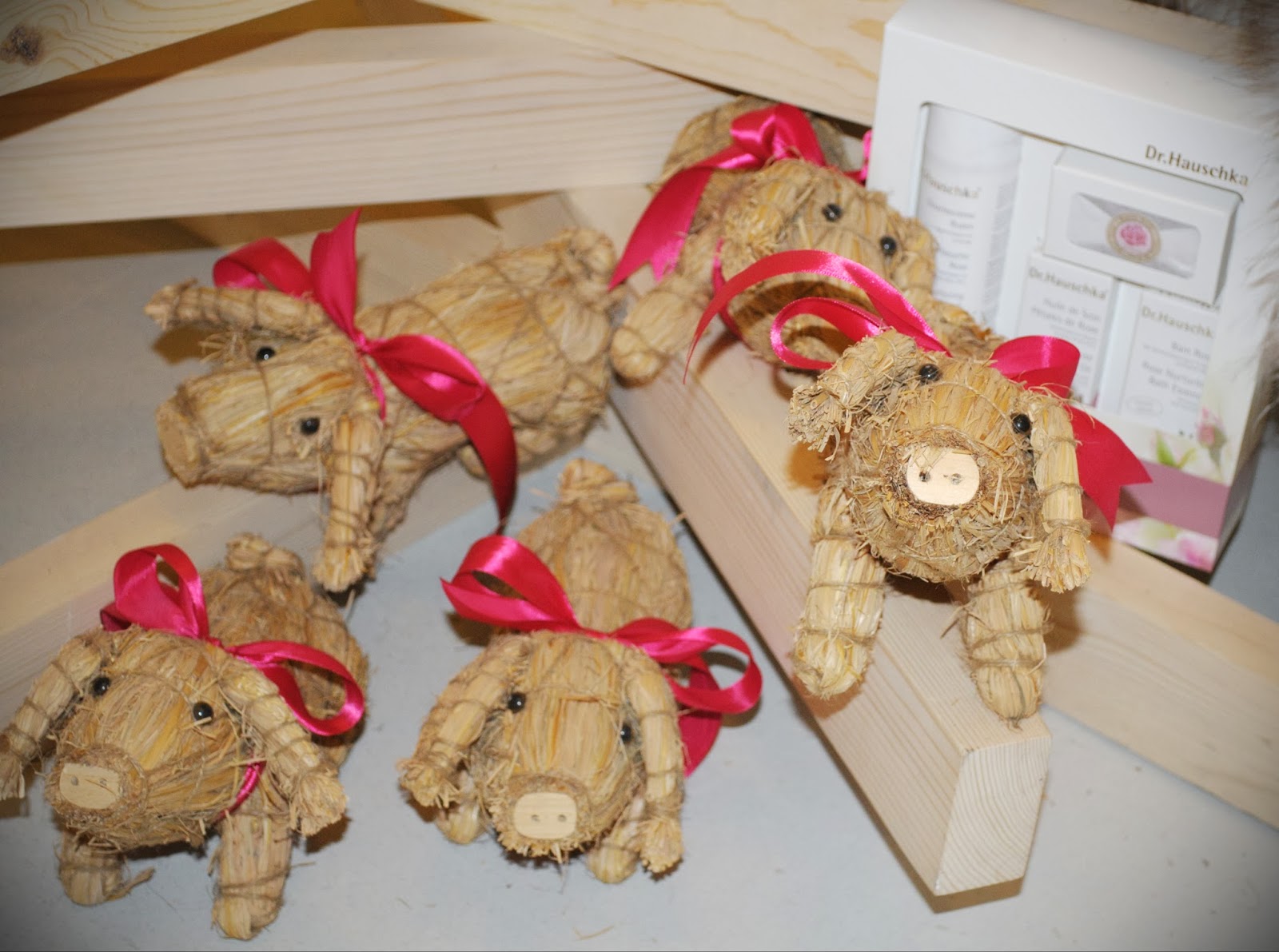 Stižemo do “praseće jelkice” i Dr. Hauschka setova. Verujem da bi se i stena raznežila da vidi ove predivno urađene beba prasiće koji krase ovu jelku i oplemenjuju prostor. Što se tiče ponude setova,